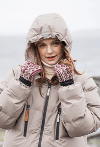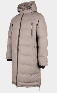 Laga i PU materiale og ei vannsøyle på 10 000 mm. Desse er heilt vanntette der regnet prellar av stoffet. Kåpene har vattering i form av kunstfiber så her kan du halde deg varm og heilt tørr når hausten sett inn for fullt. Det syntetiske foret held på varmeevna når det blir vått, i motsetning til dun, og sidan dette er ei regnjakke har me valt bort dunet. Kåpa er slitesterk og kan vaskast som vanleg PU-regntøy utan å miste form og funksjon. I tillegg tørkar syntetiske materialar raskare enn naturleg dun, noko som er ideelt når PU-stoffet ikkje skal i tørketrommelen. I tillegg har kåpa sjølvsagt teipa og sveisa saumar.